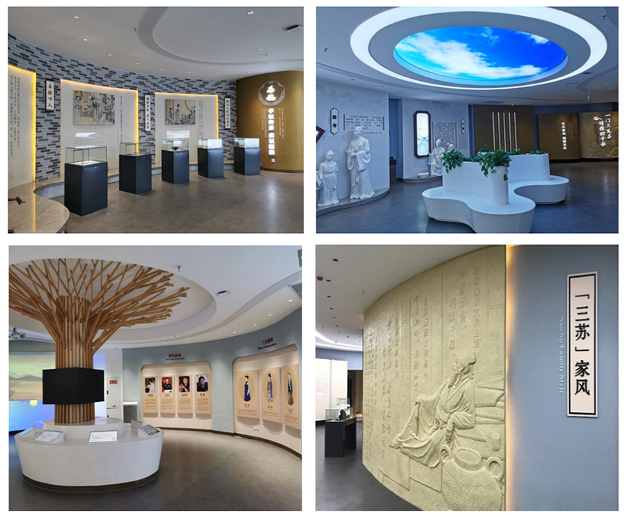 蘇母祠家風(fēng)家訓(xùn)館位于喚魚公園的核心位置,喚魚公園因蘇東坡與妻子王弗“喚魚聯(lián)姻”典故而得名,占地600畝,沿岷江濱水而建,總長約3公里,整體形象為太極雙魚,全面融入竹元素,主題文化由“賢母文化”和“初戀文化”兩個(gè)部分組成。蘇母祠家風(fēng)家訓(xùn)館分為負(fù)一層和一層上下兩層,外形做消隱的處理,使得整體造型輕盈通透,反射自然的天光云影的變幻,如時(shí)光穿梭。進(jìn)入內(nèi)部是傳統(tǒng)中軸對稱的空間,反映了內(nèi)在硬核有規(guī)矩,外在自然流轉(zhuǎn)的價(jià)值關(guān)系。